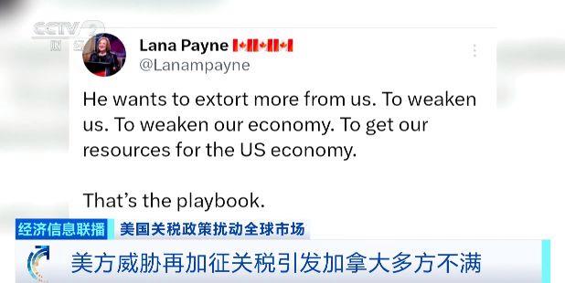 (央视财经《经济信息联播》)25日,美国威胁对加拿大加征10%关税。截至本文撰写时,美国尚未明确该措施具体涉及哪些加拿大产品。加拿大汽车工人联合会和公众也对美国的威胁言论表示不满。加拿大最大私营部门工会加拿大汽车工人全国主席拉娜·佩恩25日在社交媒体上发文,批评美国的威胁是企图“破坏加拿大经济,为美国经济夺取加拿大资源”,并呼吁加拿大“反击”。舆论认为,加拿大民众也普遍认为,美国不能仅仅因为自己的利益而任意提高关税。生气的。截至目前,加拿大联邦政府尚未对美国加征10%关税的威胁做出回应。分析人士表示,安省公告引发的争议还源于一系列贸易紧张局势,其中包括加拿大最近对美国汽车公司在加拿大减产的反应。加拿大政府23日宣布,将限制Stellantis集团和通用汽车公司可免关税向加拿大出口的汽车数量。